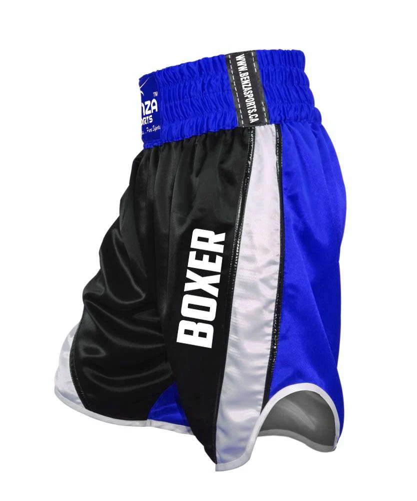 BENZA SPORTS introduce a special edition curve boxing shorts, we believe our special curve bottom boxing trunks are the coolest design available in ready-made boxing shorts. Our boxing trunks use only the best quality satin, luxurious embroidery and leatherette trims for a look worn by the stars at a low price. You can