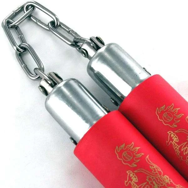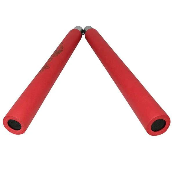 These practice foam training nunchucks feature quality bearing swivels, a stainless steel chain, and rigid handle cores surrounded by a generous layer of foam padding.