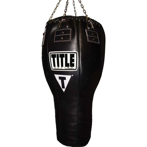 18″ Diameter on top funnels down to 11″ on bottom for a one-of-a-kind workout! Amazing design allows athletes to work on every shot…uppercuts, hooks, straight punches, angled shots, jabs and more. Quadruple-reinforced synthetic leather construction with heavy-duty D-rings. Includes bottom tie-down D-ring. Professionally packed with shredded micro-fiber material and center balanced weight for professional results. Complete with hanging chain and swivel.